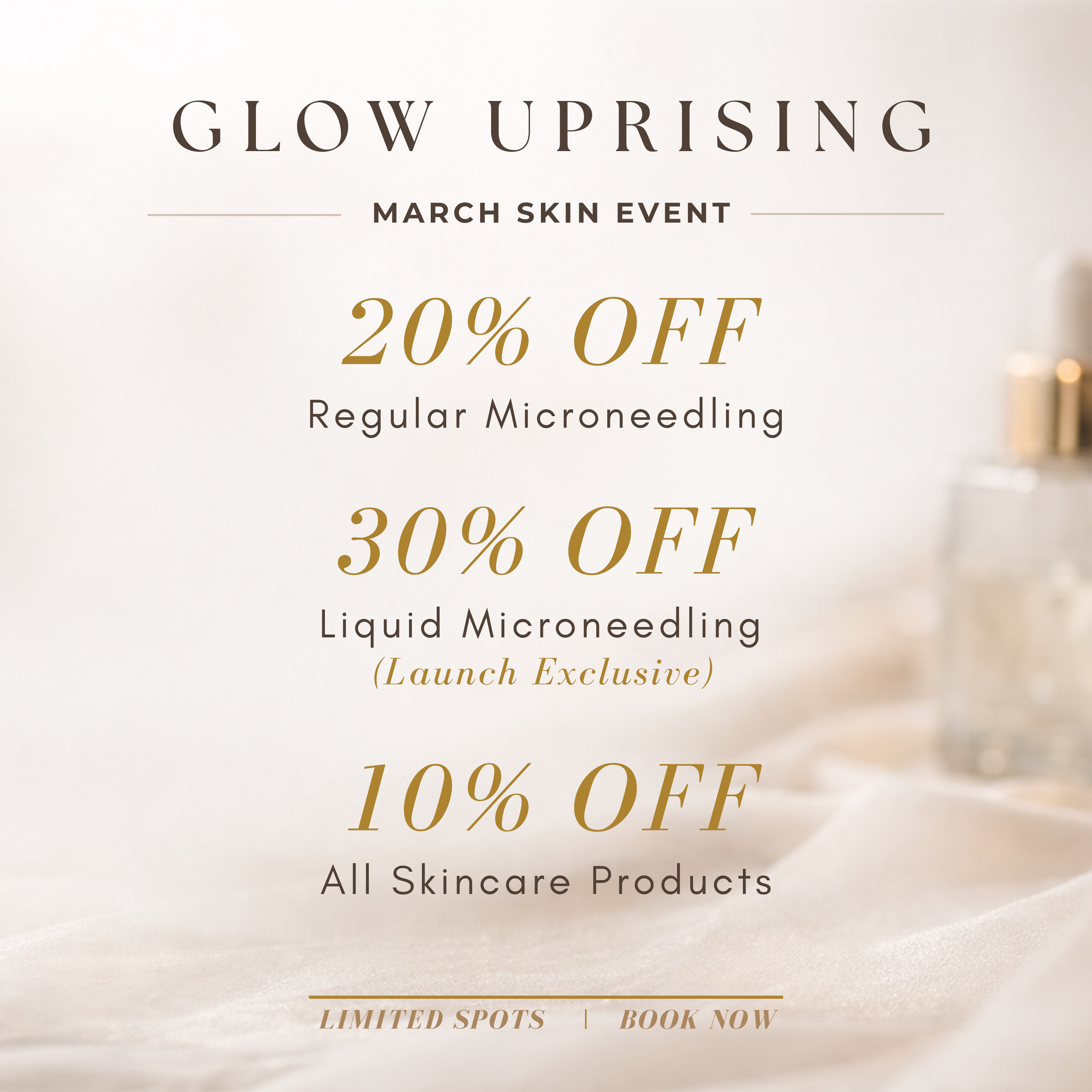 — March Skin Event — Glow Uprising — Elevated Results — Luxury Treatment — Book Now